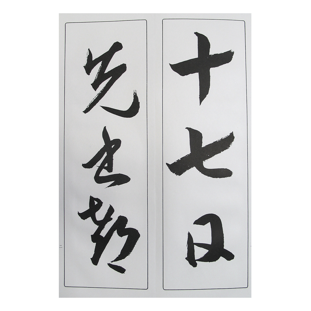 王羲之の書いた手紙を集めた「十七帖」を西脇呉石先生が臨書したものです。お手本としたものは三井本十七帖からで、刻石による文字の堅さを考慮しつつ文字に軟らか味を含めて臨書されています。