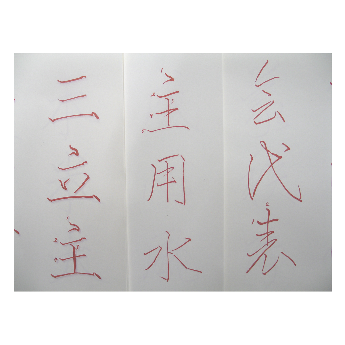 本紙に引いてある骨書赤線の上を墨筆でなぞれば、字の形や書き方が早く覚える事が出来ます。