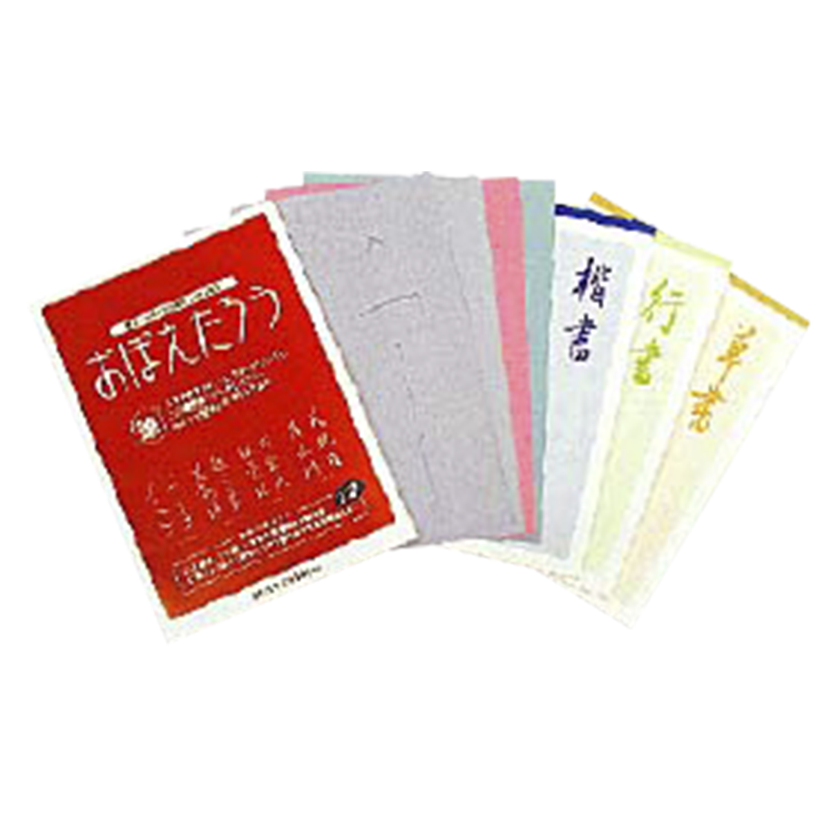 この「おぼえたろう」セットは練習用紙の赤線の文字の上を実際の墨筆でなぞることと、水筆用紙を墨なしの水筆で何度も繰り返し練習することの、二通りの使い道があります。