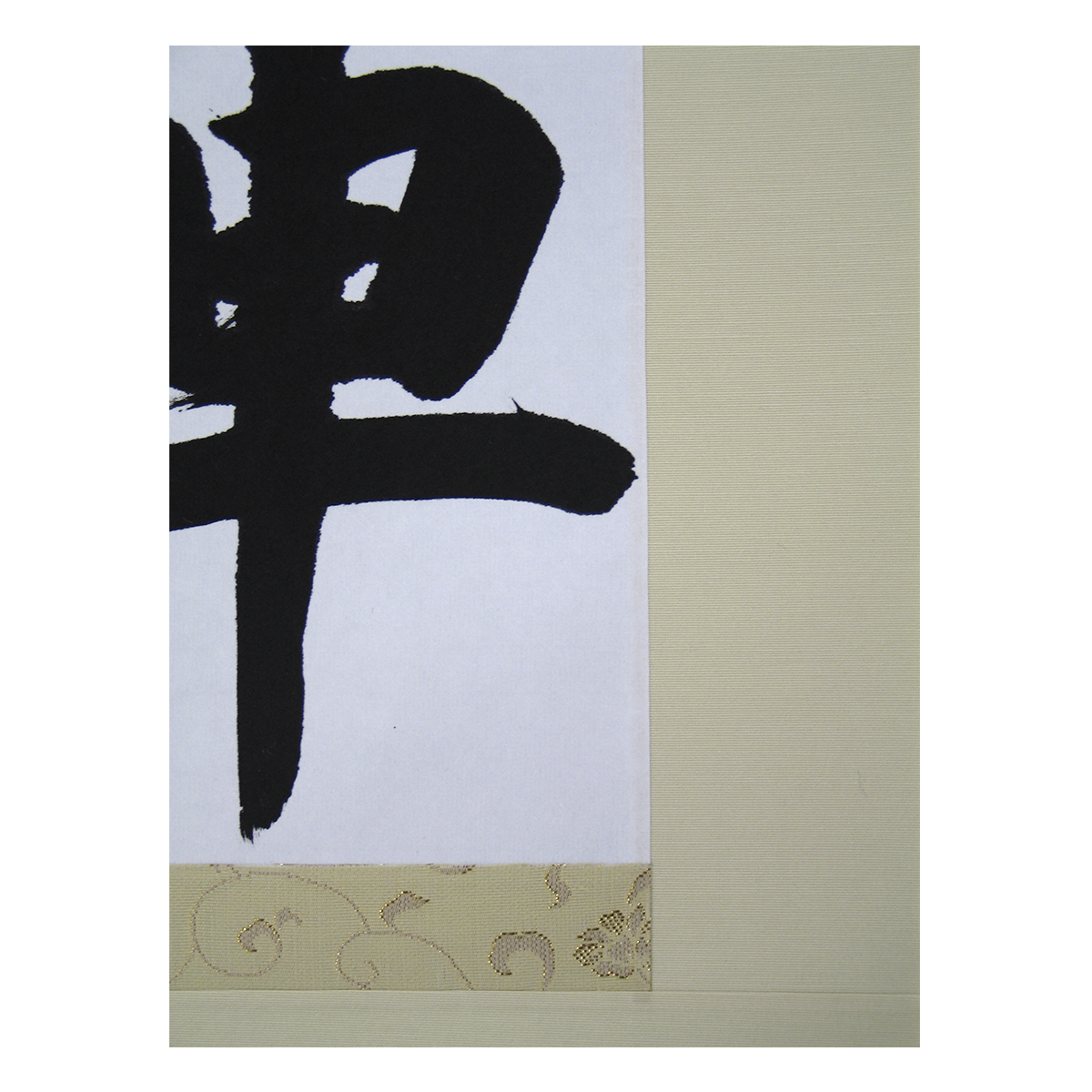 学童作品は自由奔放で元気にお書き頂く事が素晴らしい作品を書き上げる秘訣です。通常表具の場合、用紙の左右両端は表具の工程により、のびのびと書き上げた作品の一部に裂地が覆いかぶさってきてしまいました。