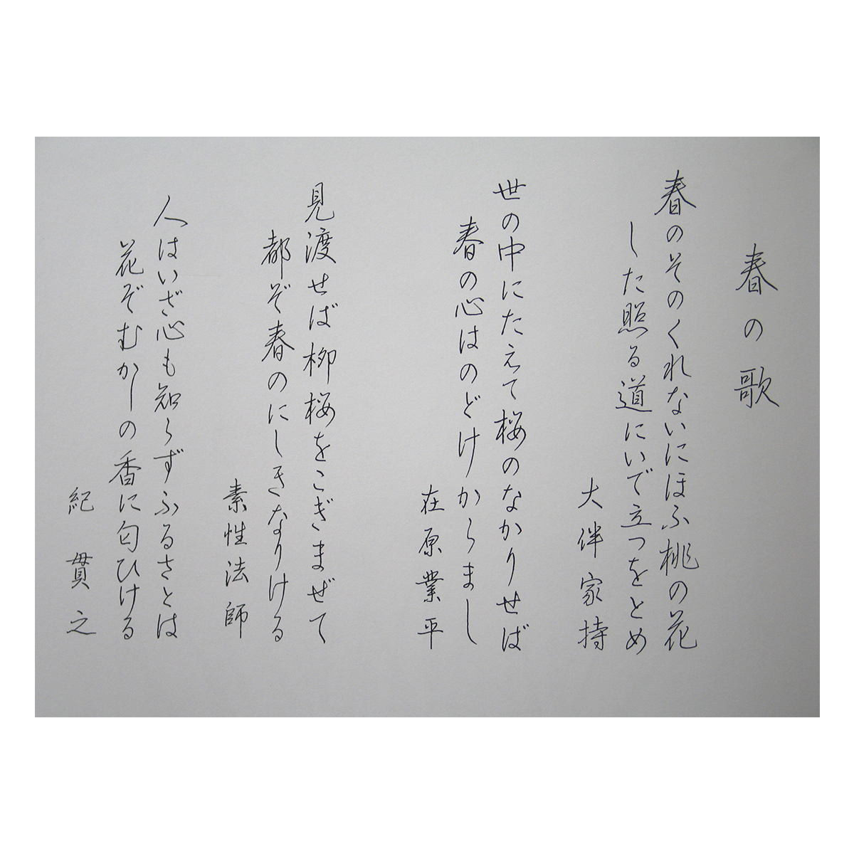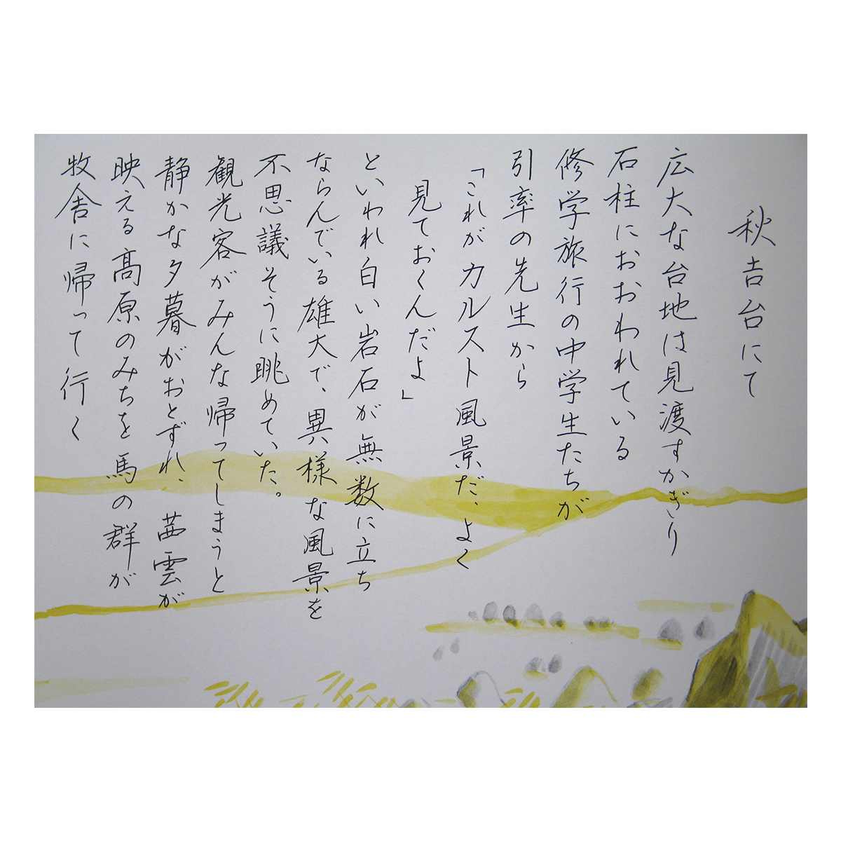 本書は西脇呉石先生のご子息である雲石先生をはじめ、ペン字に堪能な先生方が書かれた古典詩文や近代文、漢詩和歌俳句等が掲載された作品集で、背景に淡水画をあしらった美しい多色刷り版です。
